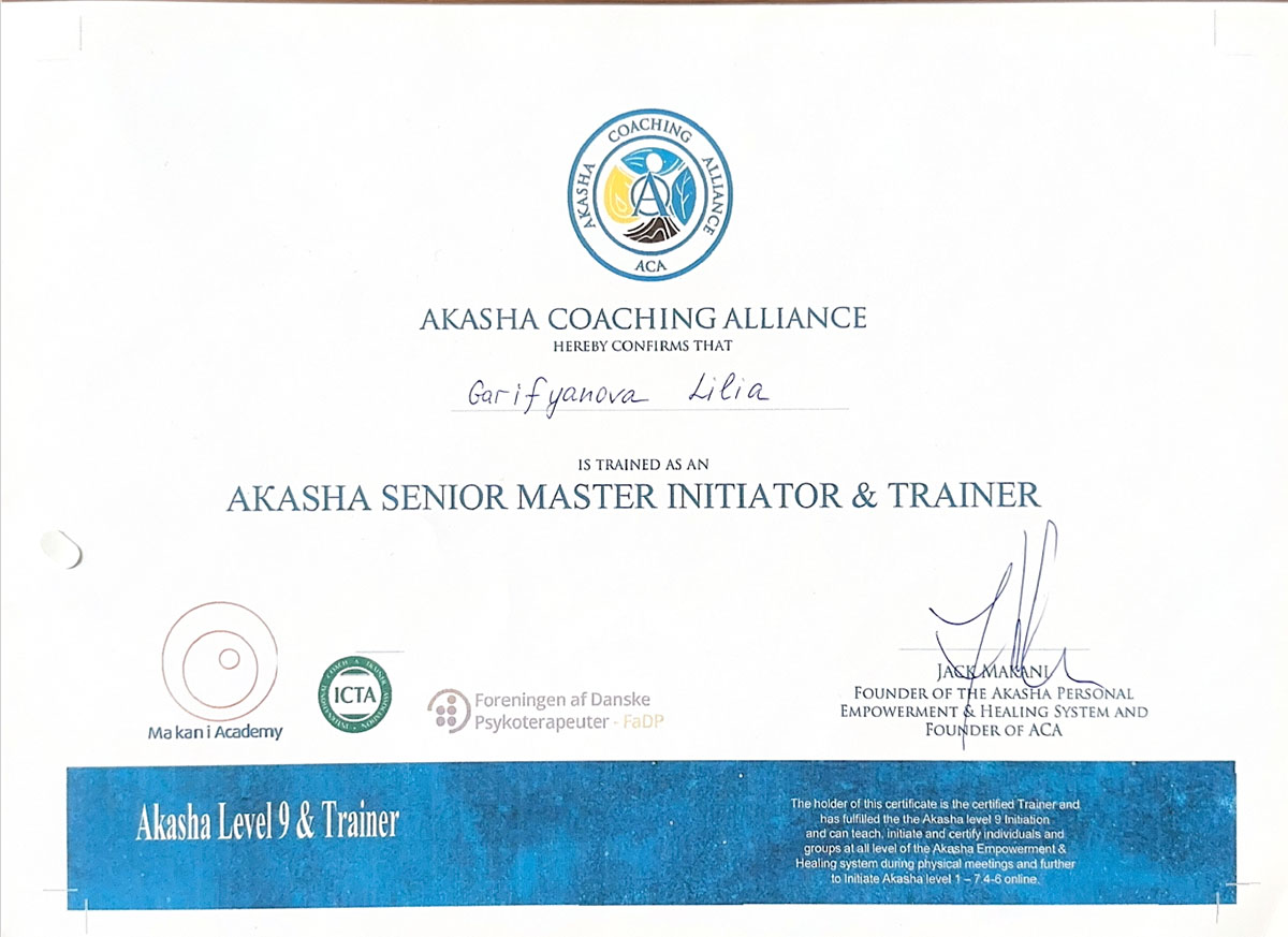 🔸Холистические и трансформационные практики / Transformational Holistic Initiator & Trainer – «Emproverment & Healing System Makany Academy Scandinavien»